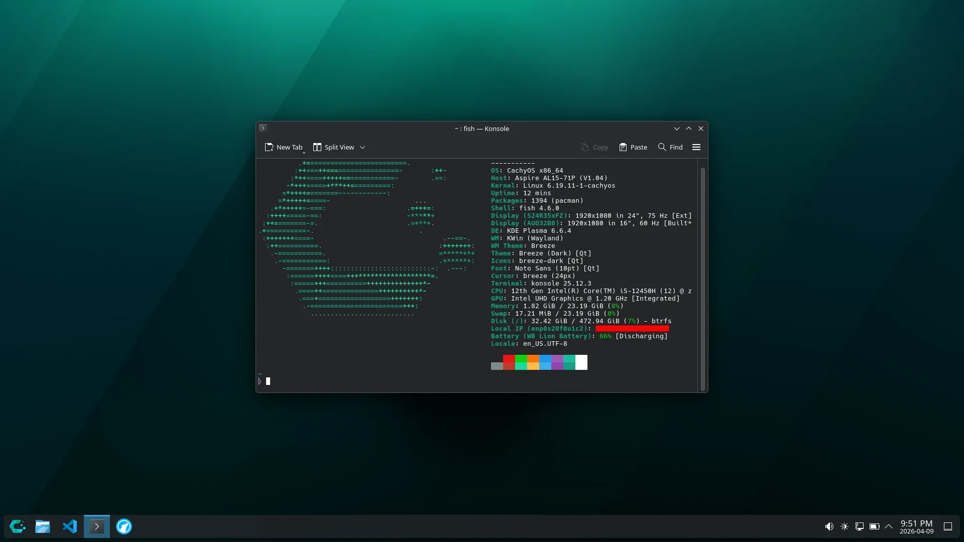 Arch is philosophically correct and practicallly exhausting as a starting point. CachyOS ships with a functioning system, sane defaults, and performance-oriented kernel patches without requiring the user to earn it first through ISO ritual. Some people find meaning in the manual process. This was not that occasion. The goal was a working system with the option to break it deliberately, not a guided tour ofpacstrap. - Self-inflicted breakage, on a schedule of one's choosing